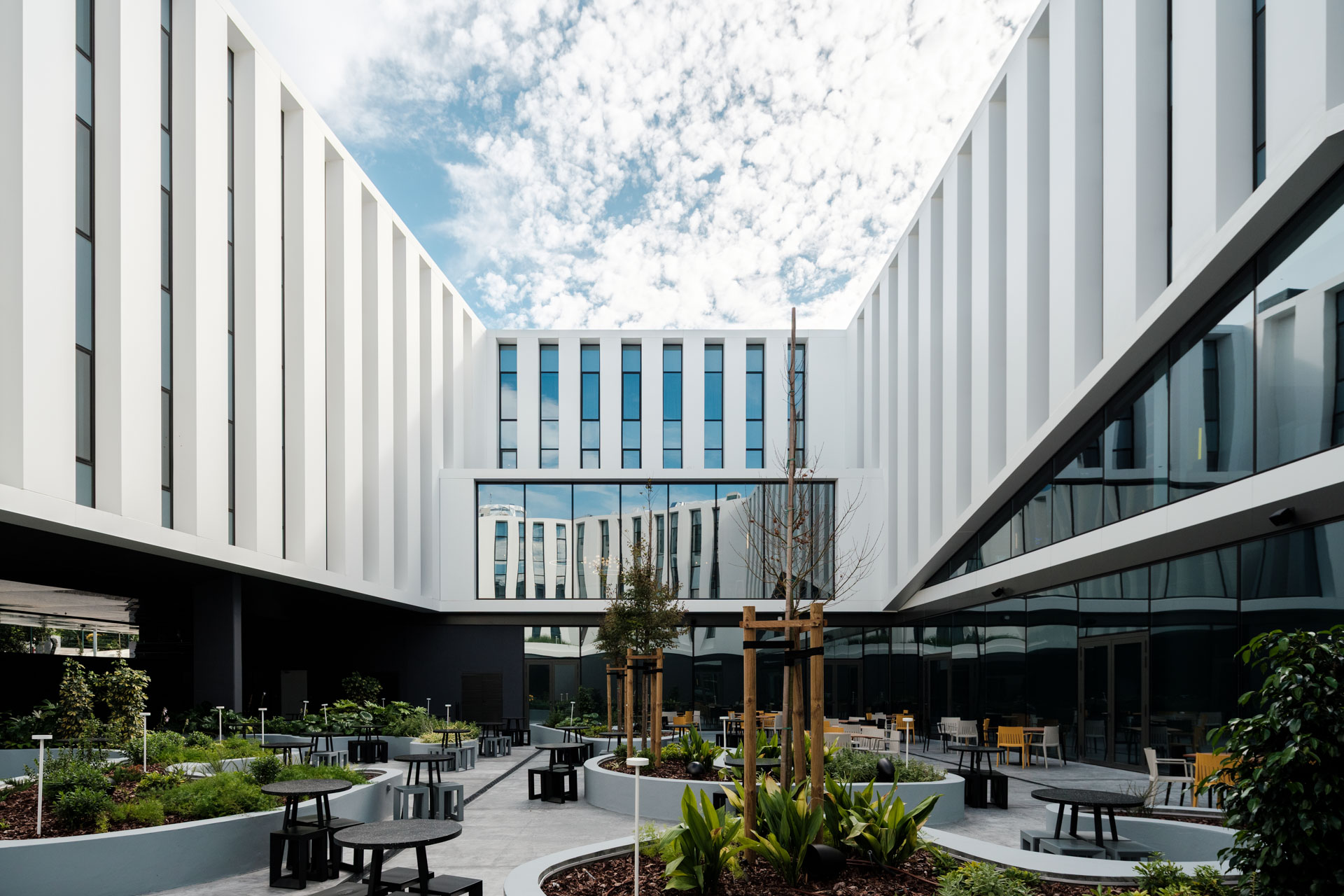 Our most recent hospitality project has started works on-site in Alfragide. This new centralization of hospitality amenities will comfortably place Amadora at the forefront stage of excellence. The hotel, with 436 beds, will be a small oasis. It is not just a hotel but rather a hub of amenities for leisure, meeting room facilities and catering industry. The building incorporates a central courtyard with an indoor garden that will allow light to unfold throughout the building. This project will contribute to the existing business dynamics of the surroundings.